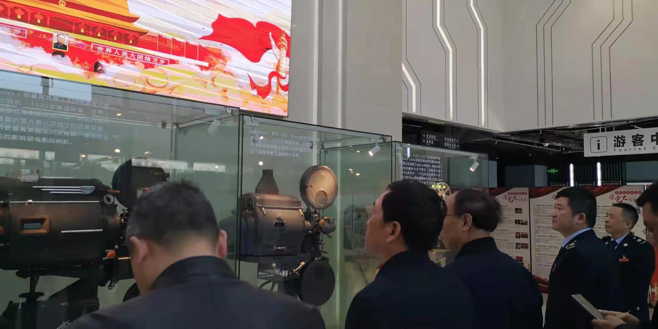 最后,大家走進紅色放映廳,共同觀看了大型文獻紀錄片《中國1949》。該片以恢宏的視野向人們展現(xiàn)了中國人民最終選擇了中國共產(chǎn)黨的根本所在,鼓舞身處和平時代的人們,要不忘初心,為中華民族的偉大復(fù)興而砥礪前行。該片還第一次展現(xiàn)了開國大典時的彩色片段,那是新中國成立70周年時,俄羅斯總統(tǒng)普京向習(xí)近平總書記贈送的當年蘇聯(lián)記者拍攝的視頻,讓大家驚嘆不已。
